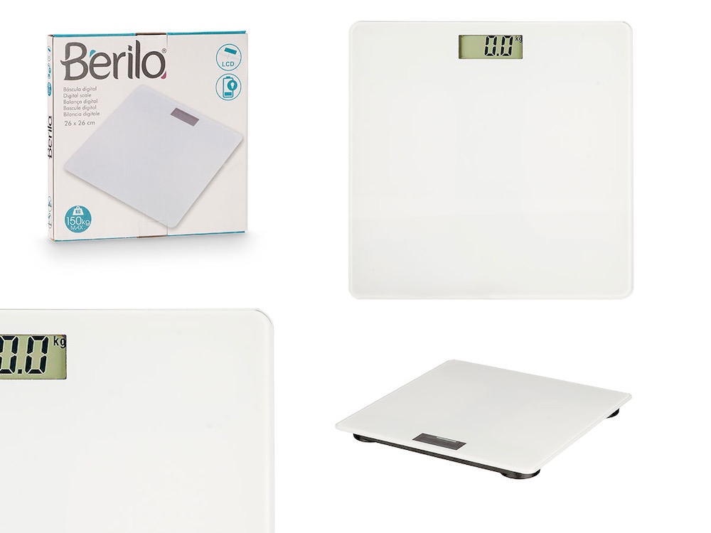 Dimensiones del Producto: 26 x 26 x 2 cm. Material: Vidrio + Plastico Colores: Blanco Detalles: Pilas: 2xAAA (No incluidas) + Peso maximo: 150KG