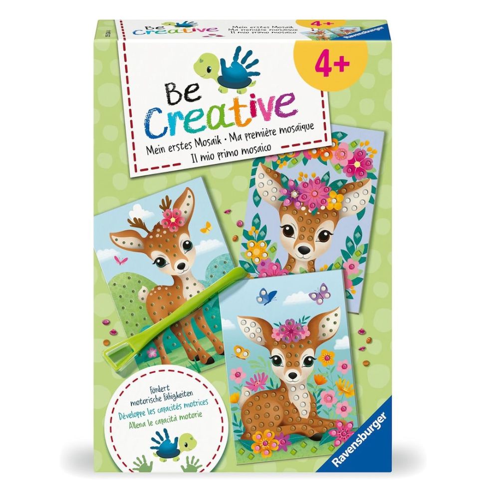 Edad recomendada: +4 años. Este estuche de mosaico permite crear fácilmente 3 cuadros con el tema cervatillo. Solo tienen que insertar las piezas de mosaico de diferentes colores en los espacios prediseñados en cada cuadro. Ideal para decorar una habitación infantil. Este producto está compuesto por materiales procedentes de bosques bien gestionados certificados FSC®