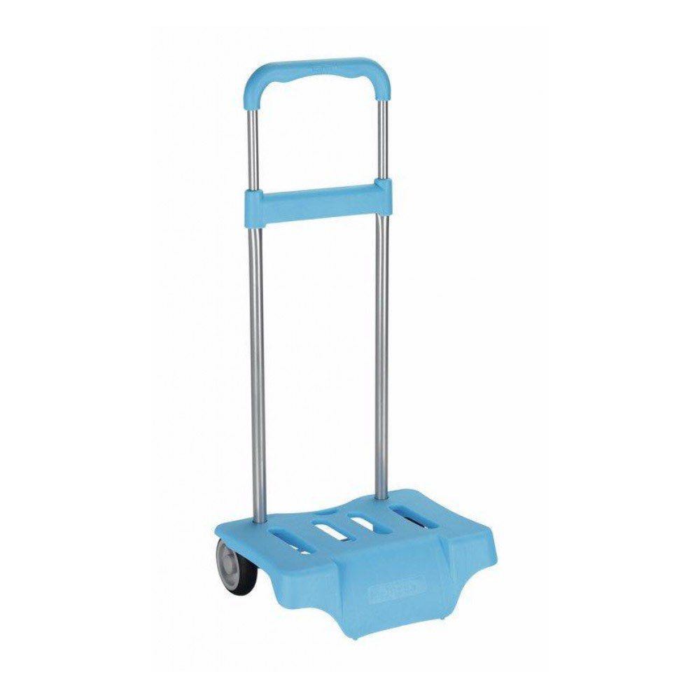 Carro portamochilas Safta color Celeste Fabricado en aluminio y polipropileno Ruedas de polipropileno y goma Extensible Medidas abierto: 85 x 30 x 23 cm Medidas cerrado: 55 x 30 x 23 cm Peso 0,87 kg