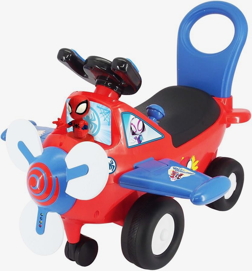 Edad recomendada: + 12 meses Soporta un peso máximo de 30 kg. Requiere 3 pilas AAA (incluidas). Injusa – Avión correpasillos Spidey, un avión muy divertido de Spidey y su Superequipo con luz y sonido, ideal para mejorar el equilibrio y la motricidad. Los correpasillos potencian el desarrollo psicomotor de los niños, así como la direccionalidad y lateralidad, tan necesarias durante su crecimiento. Este avión correpasillos está recomendado para niños a partir de los 12 meses, es ideal para el desarrollo de sus habilidades motoras mientras se divierten y aprenden a conducir. Para mayor diversión tiene luz y sonido. Con decoración permanente e impermeable en alegres colores, está inspirado en sus personajes preferidos de Spidey y su Superequipo y está fabricado en plástico de gran calidad. Sus ruedas de plástico aportan gran estabilidad y evitan desequilibrios en los movimientos. Se fabrica en España y cumple con las normativas de seguridad de la UE.