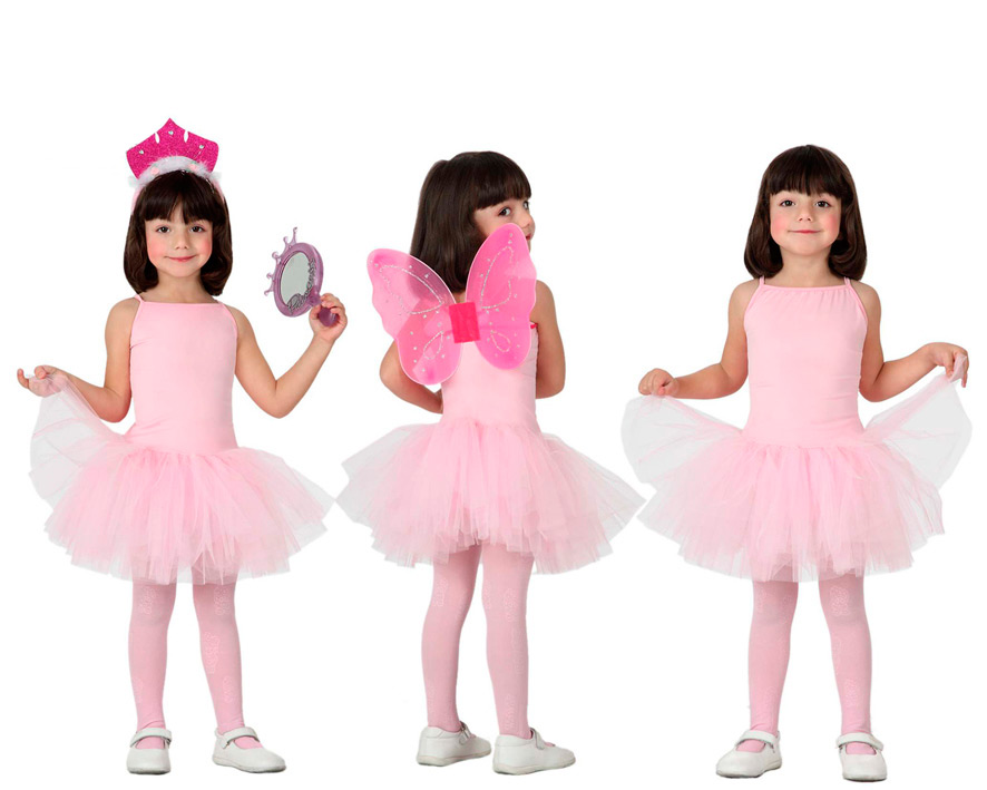 Disfraz bailarina Vestido de tirantes y falda de tul Sirve para vestir de bailarina o crear tu propio disfraz de insecto, princesa, hada Color rosa