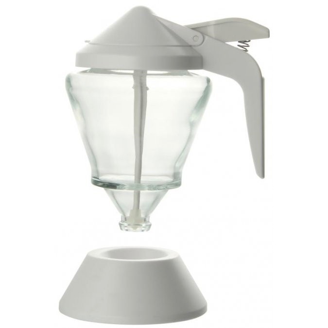 El Dispensador de Fackelmann facilita que la dosificación sea precisa y sin goteo de miel, sirope, leche condensada, etc… El recipiente de vidrio tiene una capacidad de 200 ml, la tapa, el mango y el soporte están hechos de plástico blanco. Dosifica la miel o sirope de forma precisa evitando que gotee. Muy práctico e indispensable en sus desayunos, para aderezar gofres, yogur, tostadas, leche, etc… Apto para lavavajillas. 125x140x90mm