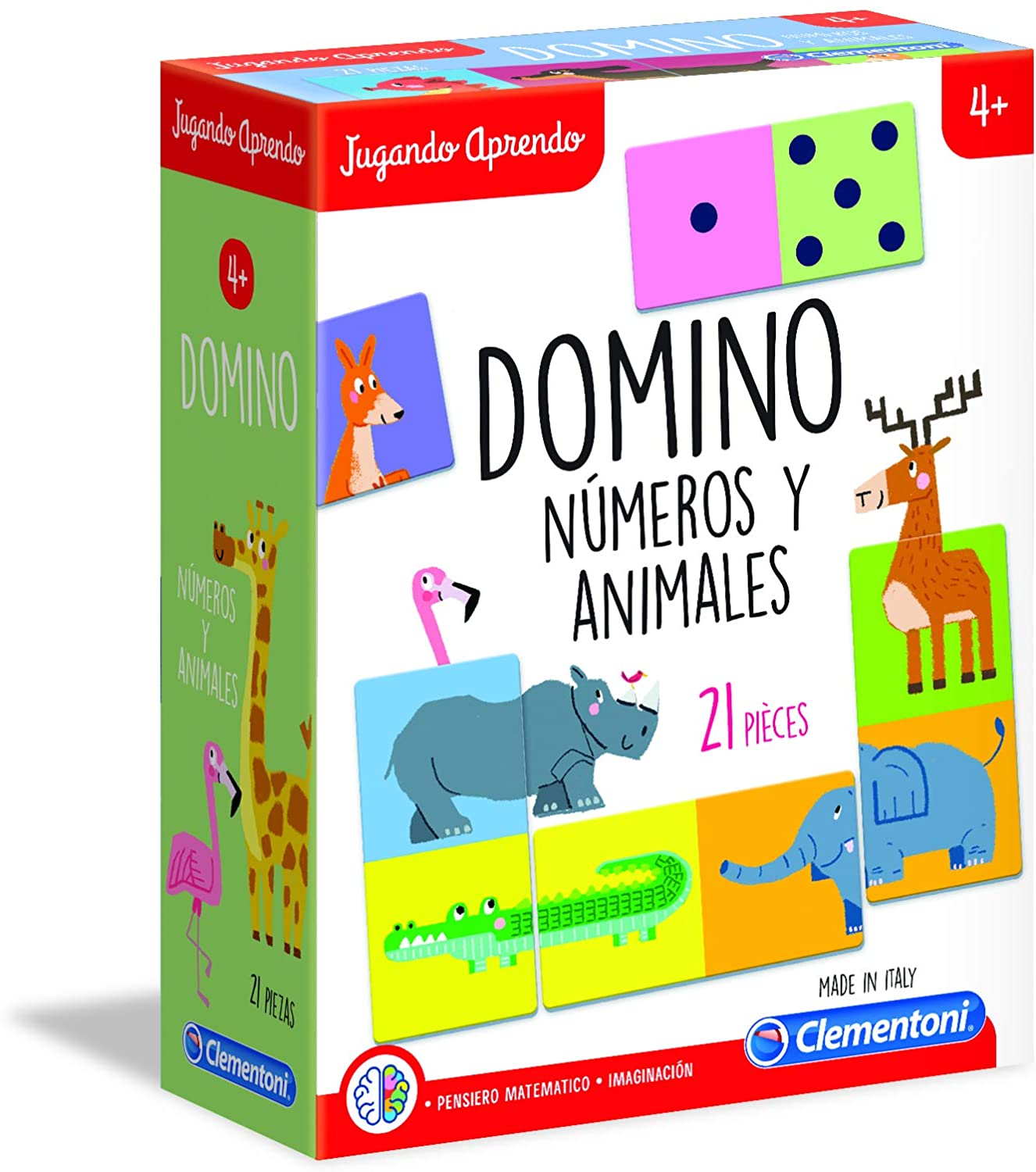 Un juego de dominó especial con 21 fichas de dos caras para descubrir todo sobre los animales y los números. Al usar estas fichas, los niños estimulan su imaginación, juntando las imágenes de las figuras de los animales y desarrollan sus capacidades matemáticas al emparejarlas con sus correspondientes cantidades. Edad recomendada: +4 años.