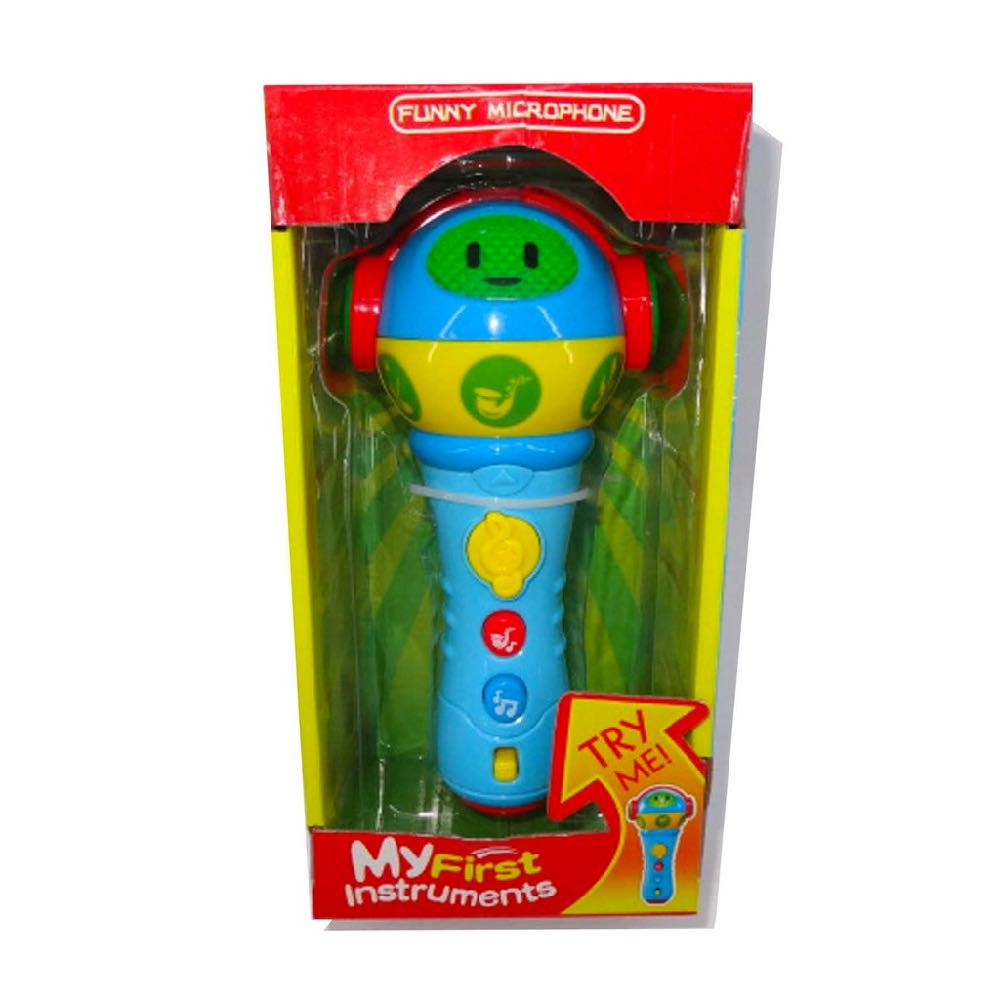 Microfono infantín con luces y sonidos. Mide 18cm. incluye las pilas. Dimensiones de la caja: 23x11x9cm.