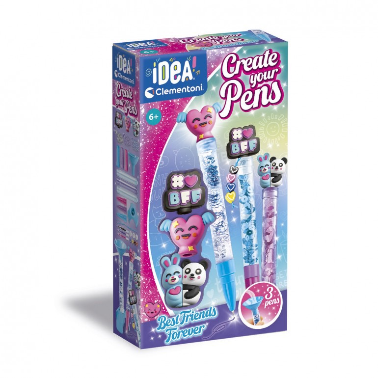 Edad recomendada: +6 años. Un original kit creativo que permite montar 3 bolígrafos y personalizarlos con diferentes decoraciones, eligiendo entre 3 temas diferentes. Un kit práctico y completo compuesto por: 3 bolígrafos, 4 tintas de colores diferentes, 3 personajes y todas las herramientas para crearlos. Un concepto que va más allá de la simple actividad de personalizar un bolígrafo y permite crear dando rienda suelta a la imaginación.