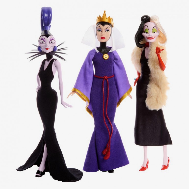 Conoce a estras tres muñecas villanas, inspiradas en los personajes animados de las películas de Disney, perfectas para ampliar tu mundo de juegos imaginativos de Disney. El conjunto incluye a Maléfica, a Cruella De Vil y a Yzma.