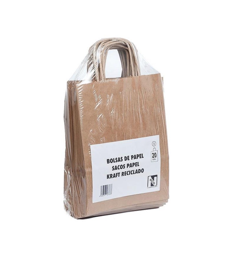 Bolsas asa rizada kraft 18x8x24 – UV: Paq 20 uds – Caja 20 paq