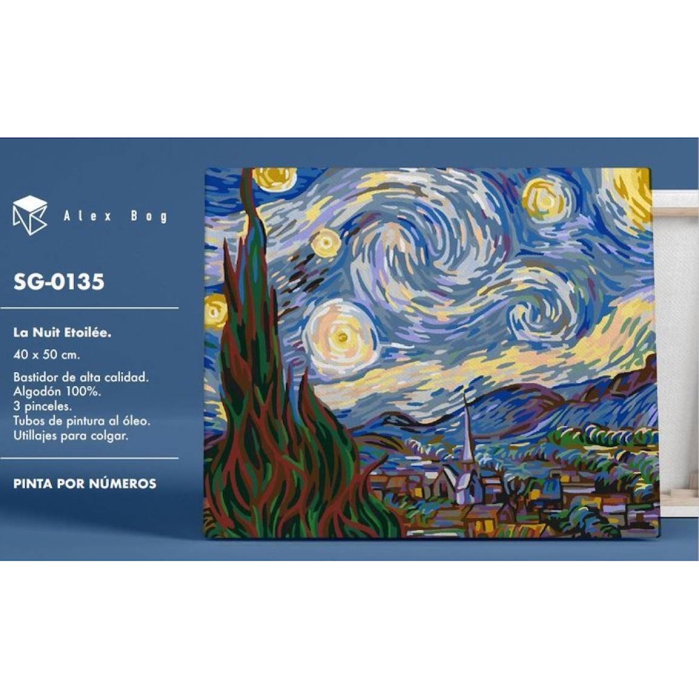 Medidas: 40 x 50 cm. Pintar por números, también conocido como pintura numerada, es un pasatiempo creativo que incluye un boceto previo al dibujo en un lienzo de lino, pequeños tubos de pintura acrílica y pinceles. El dibujo está numerado y cada numero corresponde al numero dibujado en el lienzo. Esta forma de arte contiene multitud de beneficios. Si quieres hacer un borde definido entre dos colores es recomendable esperar que se seque el primer color y, una vez seco, puedes utilizar el otro color para perfilar y rellenar entre lineas. Para que quede con forma rasgada debes de pasar el pincel sobre cada color rápidamente y con movimiento suave y ligero.