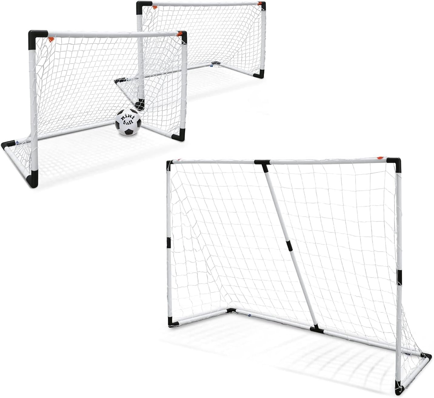 Medidas: 183 x 41 x 121 cm Este gran conjunto de puerta de fútbol lo puede hacer dentro y fuera de cada habitación y puede transformar cualquier jardín en un campo de fútbol. Consta de: 2 porterías de fútbol (ancho x 92 de altura 63 cm), bolas de plástico, que también se puede utilizar como porterías de hockey.