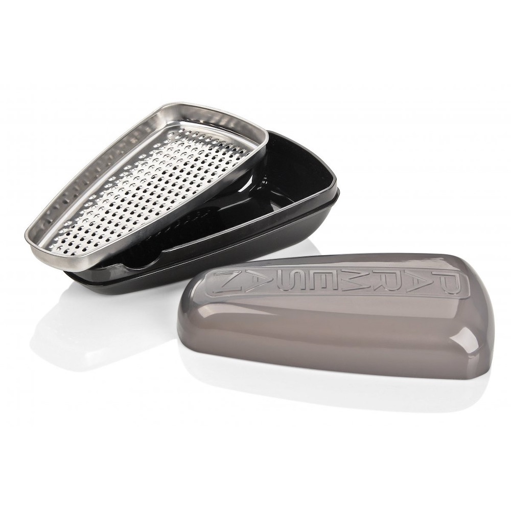 Excelente para rallar queso, ideal para rallar parmesano ya que el tamaño se adapta a las esquinas de éste tipo de queso, el contenedor permite conservarlo fresco despues de haberlo rallado sin perder ininguna de sus propiedades. 190x95x70mm.