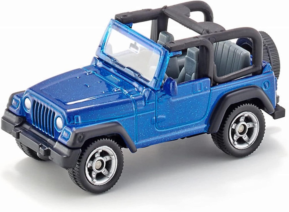 Medidas: 76x33x32 mm. El legendario Wrangler Jeep ahora también está disponible como modelo a pequeña escala en la gama SIKU. Cuerpo de metal y ruedas grandes. El grabado auténtico muestra la rueda de repuesto en la parte trasera.