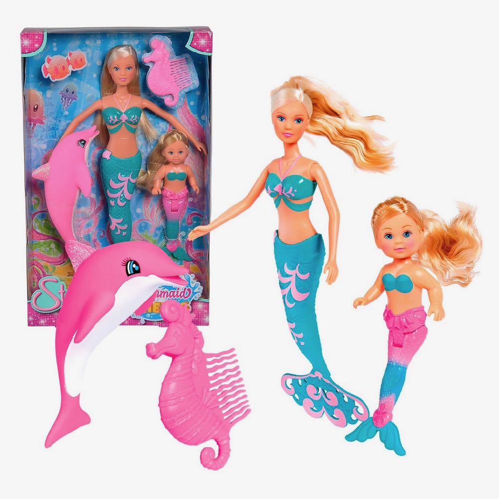 La sirena Steffi está acompañada de Evi y su amigo delfín. Podrás peinar a Steffi y Evi con su peine con forma de caballito de mar. Edad recomendada: a partir de 3 años.