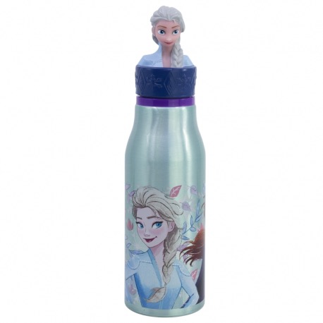 Botella de agua infantil de aluminio de 690 ml con figurita en el tapón de Frozen Resistente botella de aluminio con tapón de rosca, decorada con una figura en 3D de los personajes de las series infantiles favoritas, hará que los niños quieran llevarla a todas partes. – Capacidad: 690 ml – Libre de BPA