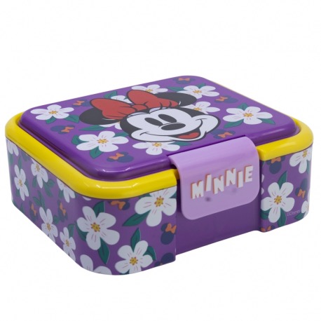 Robusta fiambrera infantil múltiple con 3 compartimentos de Minnie Original y práctica sandwichera con tres compartimentos. Robusta y fabricada en material resistente, aguantará las caídas y golpes accidentales del uso diario y, al estar decorada con atractivos diseños basados en los personajes principales de sus series favoritas, hará que los más pequeños estén encantados de llevársela allá donde vayan. – 1 compartimento grande y 2 pequeños – Libre de BPA
