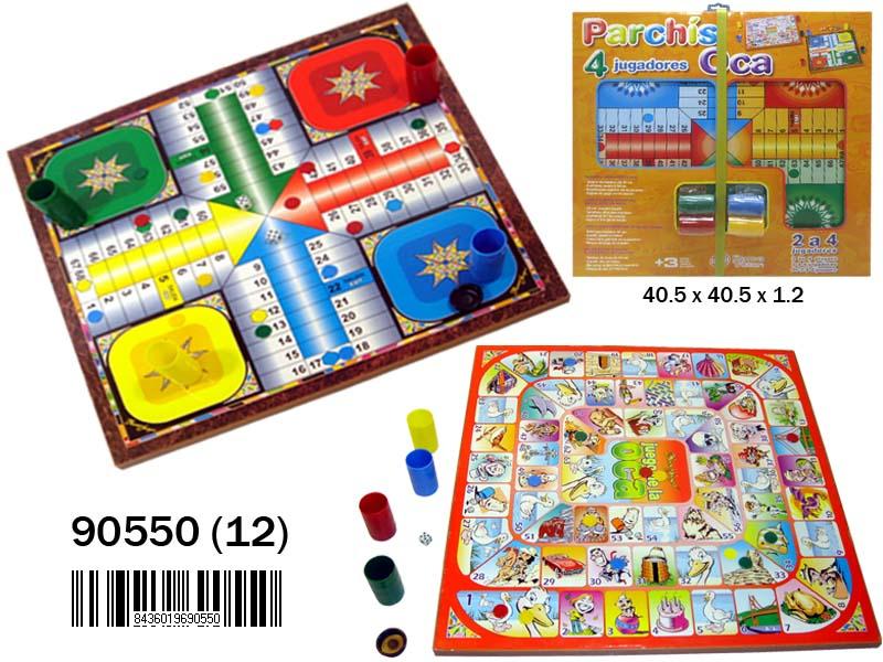PARCHÍS/OCA 4 JUGADORES. Tablero de madera, incluye fichas, dados y cubiletes. Medidas 40x40cm.