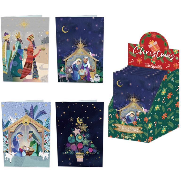 Medidas: 13.3 x 19.1 cm Detalles oro y 3D 4 diseños Presentación en caja expositora de 48 uds. surtidas