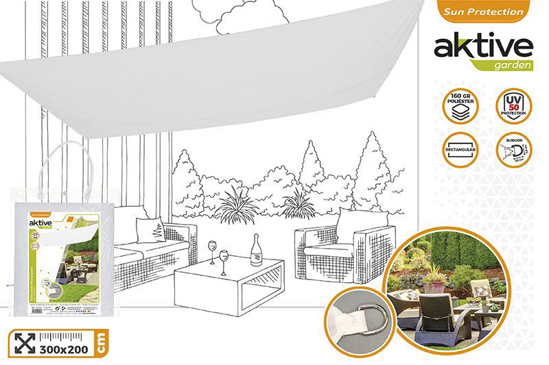 Toldo Sombrero con Protección UV50. Forma rectangular. Dimensiones: 200×300 cm. Color Blanco.
